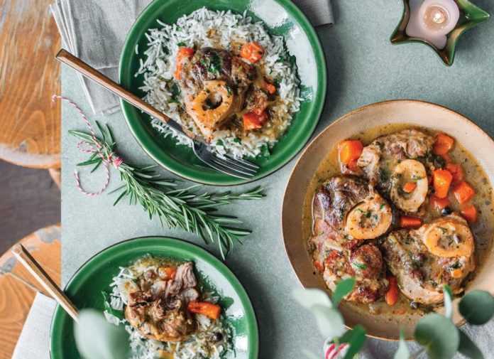 • Σερβίρουμε το οσομπούκο με ρύζι και τη σάλτσα του.