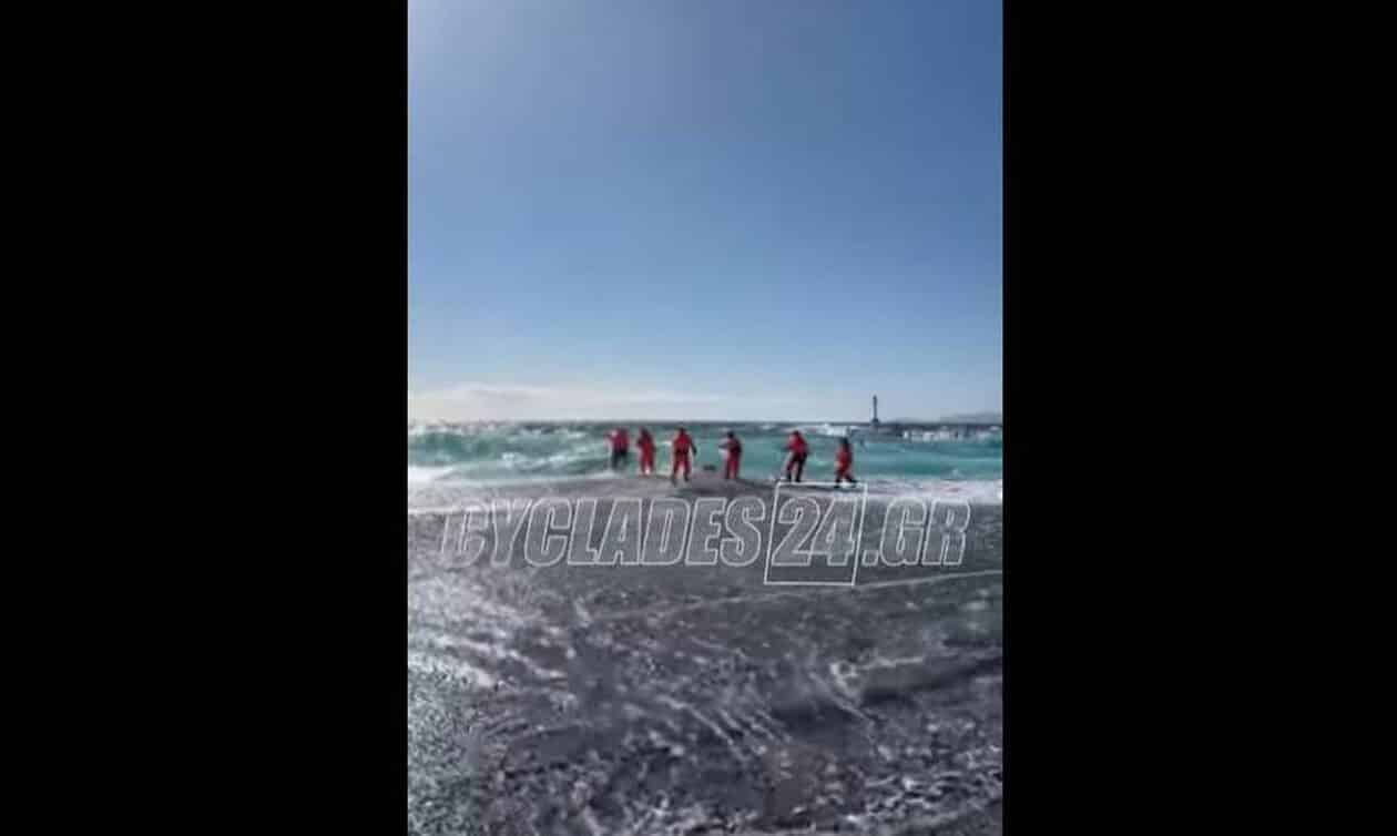 Οι καβοδέτες πάλεψαν με τα κύματα για να δέσουν το Blue Star Paros στο λιμάνι της Τήνου