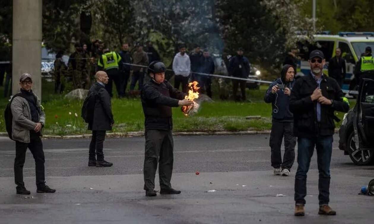 Υπό αυστηρά μέτρα ασφαλείας και πίσω από μεταλλικά διαχωριστικά, ο Ράσμους Παλουντάν, ο σουηδοδανός εξτρεμιστής ηγέτης του ακροδεξιού κόμματος Stram Kurs (Hard Line), αντιισλαμιστής και πολέμιος της μετανάστευσης, όπως είχε ανακοινώσει, έκαψε ένα αντίγραφο του Κορανίου, διαπίστωσε δημοσιογράφος του Γαλλικού Πρακτορείου.