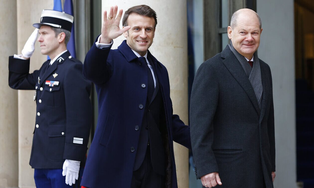 «Η Γερμανία και η Γαλλία, επειδή άνοιξαν το δρόμο της συμφιλίωσης, οφείλουν να γίνουν πρωτοπόροι για την επανίδρυση της Ευρώπης μας», δήλωσε ο αρχηγός του γαλλικού κράτους ενώπιον του γερμανού καγκελαρίου Όλαφ Σολτς.