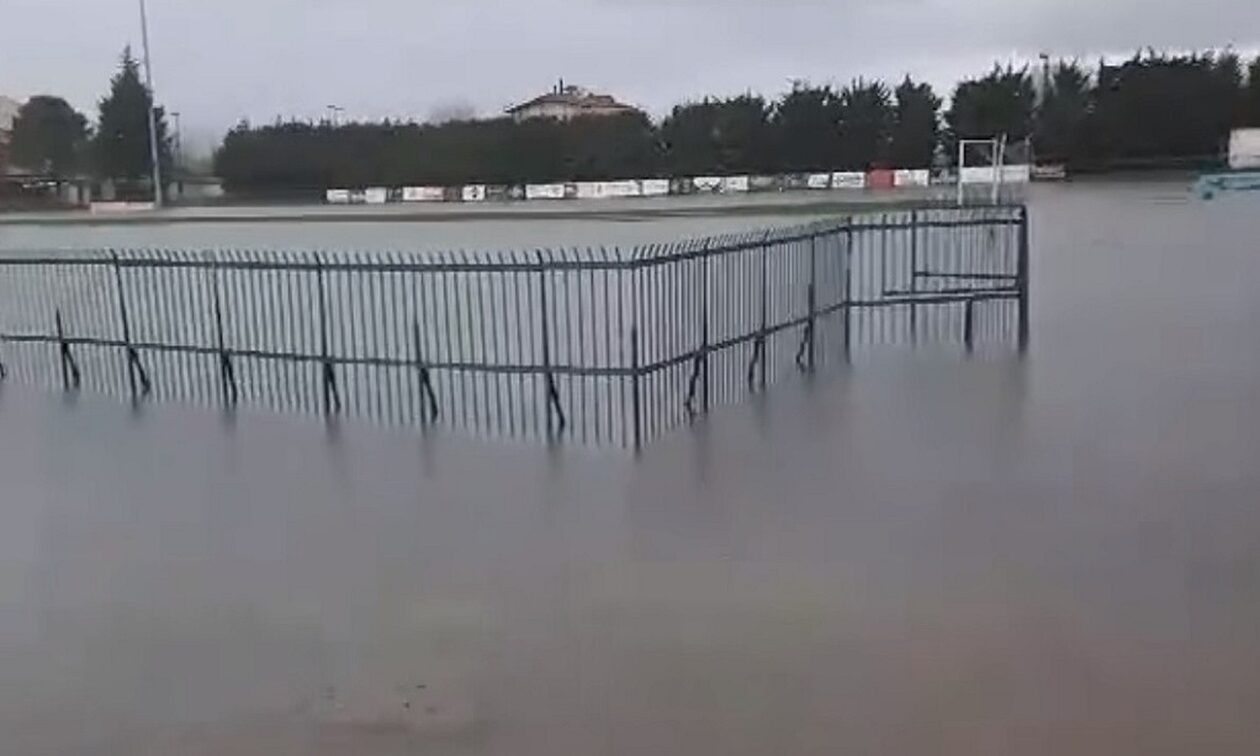 Μια απέραντη λίμνη το γήπεδο του Αλμωπού