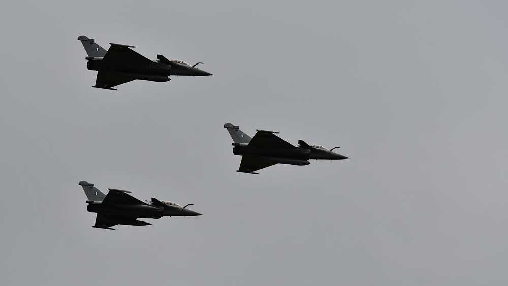 Θέλω να σάς θυμίσω ότι εδώ στους ουρανούς πάνω από την Αττική και με βάση την Τανάγρα πετούν ήδη 10 υπερσύγχρονα αεροσκάφη Rafale τα οποία απέκτησε η Πολεμική μας Αεροπορία, καθώς υλοποιούμε στην πράξη τη δέσμευσή μας η πατρίδα μας να είναι ισχυρή, ασφαλής. Μία Ελλάδα με αυτοπεποίθηση, η οποία θα μπορεί να ατενίζει το μέλλον με αισιοδοξία», ανέφερε ο πρωθυπουργός.