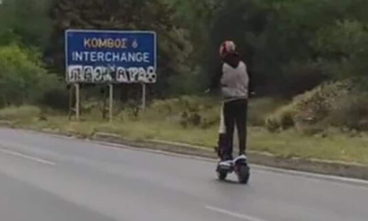 Σαν… τρελός έτρεχε ένας που κινούνταν με ηλεκτρικό πατίνι στον Περιφερειακό της Θεσσαλονίκης, όπως φαίνεται σε βίντεο που κατέγραψε ένας οδηγός. Ο οδηγός του αυτοκινήτου επικεντρώνει στο πλάνο του το κοντέρ του, που δείχνει σχεδόν 100 χλμ και στη συνέχεια το πλάνο πηγαίνει στο πατίνι που βρίσκεται πιο μπροστά.