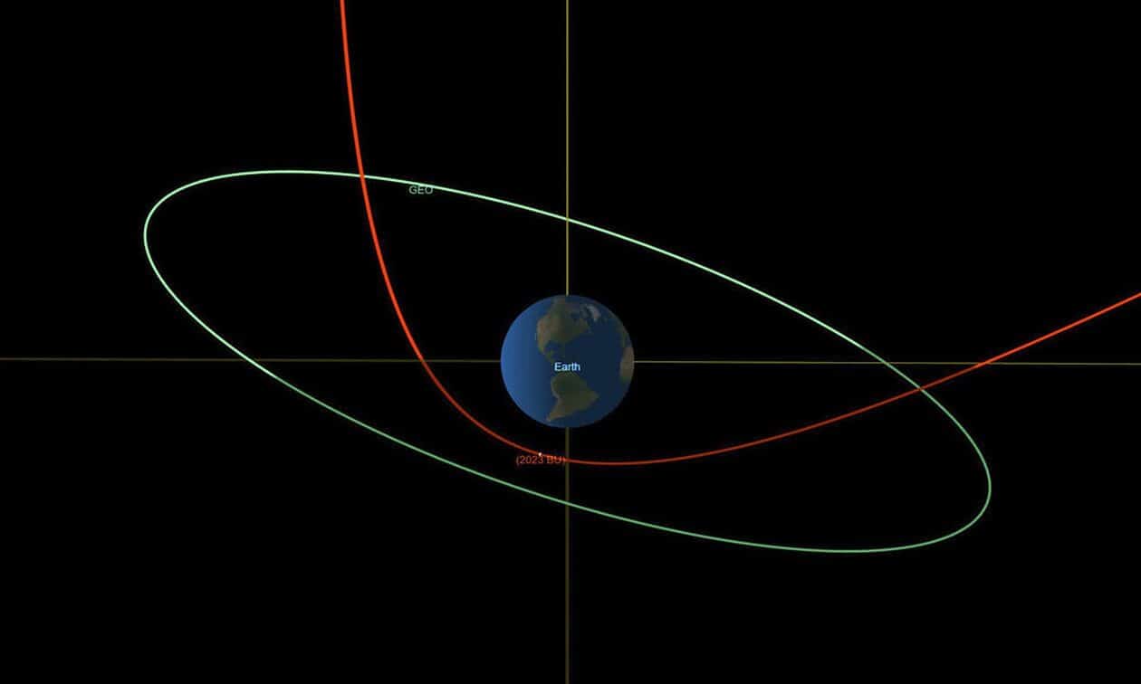 «Ξυστά» από τον πλανήτη μας αναμένεται να πέρασει σε μερικές ώρες ένας μικρός αστεροειδής. Πρόκειται για μια από τις πιο κοντινές προσεγγίσεις αστεροειδούς που έχουν ποτέ καταγραφεί, πολύ χαμηλότερα από δορυφόρους. Ο αστεροειδής «2023 BU», διαμέτρου 3,5 έως 8,5 μέτρων, θα περάσει λίγο πάνω από το νότιο άκρο της Νότιας Αμερικής, πολύ χαμηλότερα – στο ένα δέκατο περίπου – από την τροχιά των γεωσύγχρονων δορυφόρων.