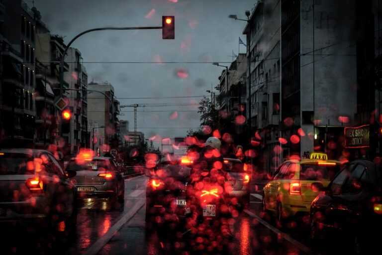 Βεβαρημένη είναι η εικόνα της κυκλοφορίας στους δρόμους του λεκανοπεδίου λόγω της βροχόπτωσης.