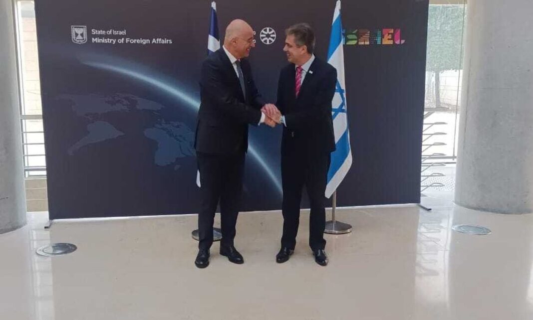 Θερμή και εγκάρδια υποδοχή στην είσοδο του ισραηλινού υπουργείου Εξωτερικών και καλημερίζοντάς τον στα ελληνικά, επιφύλαξε στον Νίκο Δένδια ο υπουργός Εξωτερικών του Ισραήλ Έλι Κοέν.