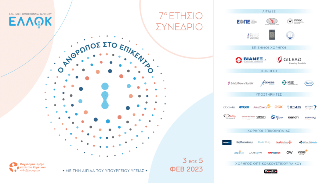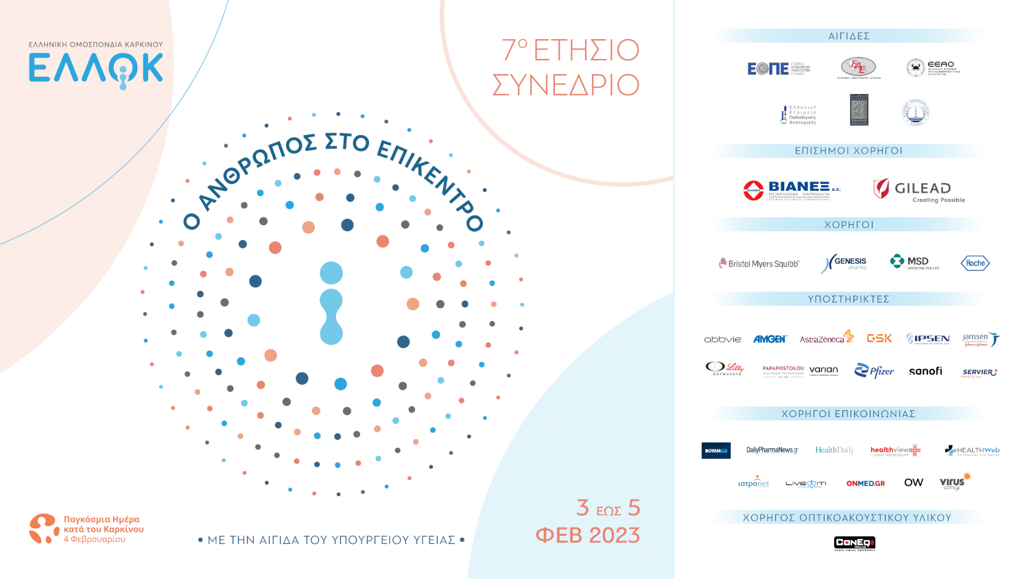Με σημείο αναφοράς την Παγκόσμια Ημέρα κατά του Καρκίνου, η Ελληνική Ομοσπονδία Καρκίνου – ΕΛΛΟΚ διοργανώνει το 7ο Ετήσιο Συνέδριό της, το οποίο θα πραγματοποιηθεί στις 3-5 Φεβρουαρίου 2023 στο ξενοδοχείο Wyndham Grand Athens (Μ.Αλεξάνδρου 2, Αθήνα).
