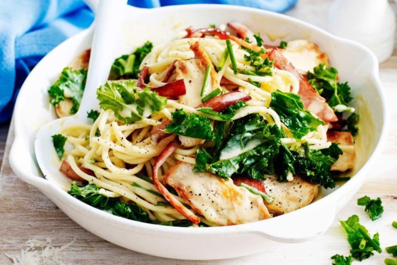 Δοκιμάστε αυτό το πιάτο από ελαφρύ κοτόπουλο και λαχανίδες για μια πιο ελαφριά εναλλακτική στην παραδοσιακή κρεμώδη καρμπονάρα.
