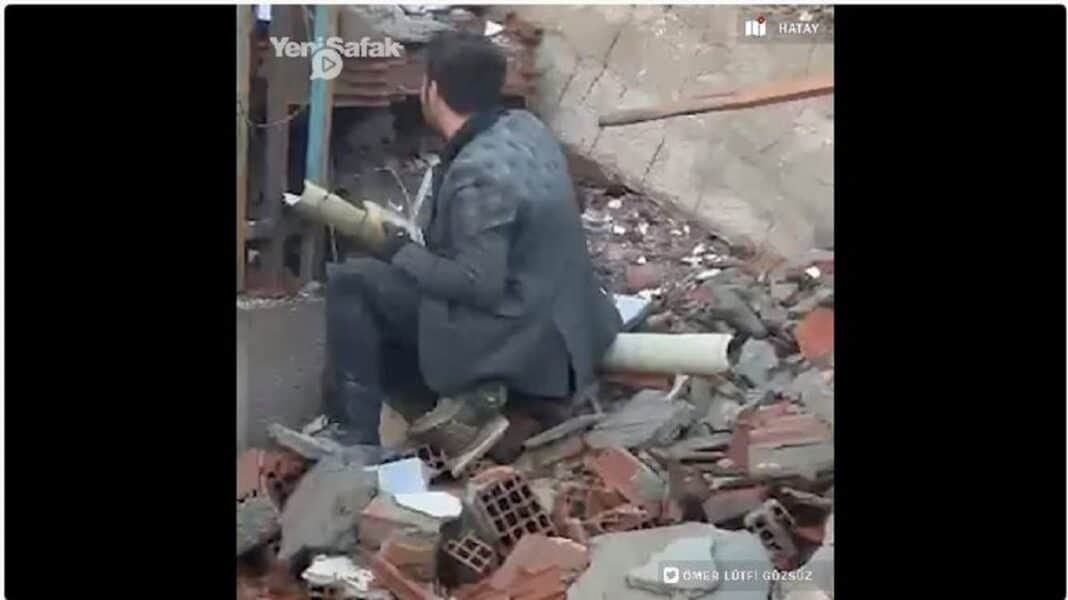Οι εικόνες προκαλούν ανατριχίλα. Ένας άνδρας, δίπλα στα ερείπια της πολυκατοικίας, φωνάζει ελπίζοντας ότι θα ακούσει μια απάντηση. Μια φωνή…