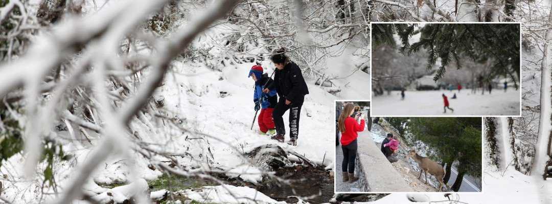 Ορισμένοι επέλεξαν απλά να περπατήσουν, άλλοι έπαιξαν χιονοπόλεμο, κάποιοι έφτιαξαν χιονάνθρωπους και άλλοι τάισαν τα ελάφια. Το ενδιαφέρον του κόσμου να δει λίγο χιόνι ήταν τόσο έντονο που, όπως φαίνεται και στις φωτογραφίες, προκλήθηκε μποτιλιάρισμα.