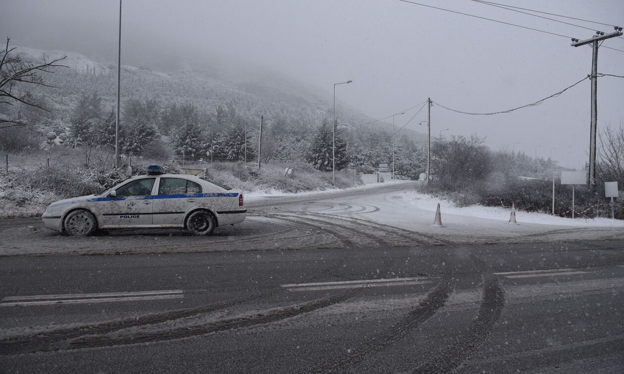 Ακόμη και το κέντρο της πόλης της Λαμίας έχει καλυφθεί με χιόνι, ενώ τα εκχιονιστικά μηχανήματα δίνουν μάχη να κρατήσουν ανοιχτό το εθνικό δίκτυο Αθηνών-Θεσσαλονίκης από τα Καμένα Βούρλα μέχρι τις Ράχες.