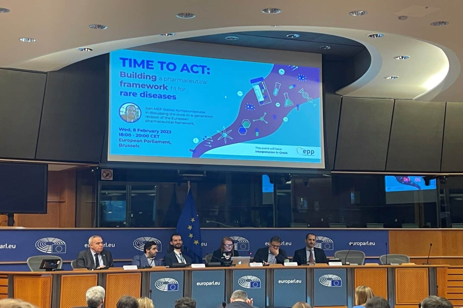 πραγματοποιήθηκε στο Ευρωκοινοβούλιο, με θέμα Time to act: Building a pharmaceutical framework fit for rare diseases” και οικοδεσπότη τον Ευρωβουλευτή του Ευρωπαϊκoύ Λαϊκoύ Κόμματoς (ΕΛΚ) κ. Στέλιο Κυμπουρόπουλο. Στην εκδήλωση συμμετείχαν εκπρόσωποι ασθενών με σπάνια νοσήματα, από Ελλάδα και Ευρώπη, εκπρόσωποι της Ευρωπαϊκής Επιτροπής και της φαρμακοβιομηχανίας.