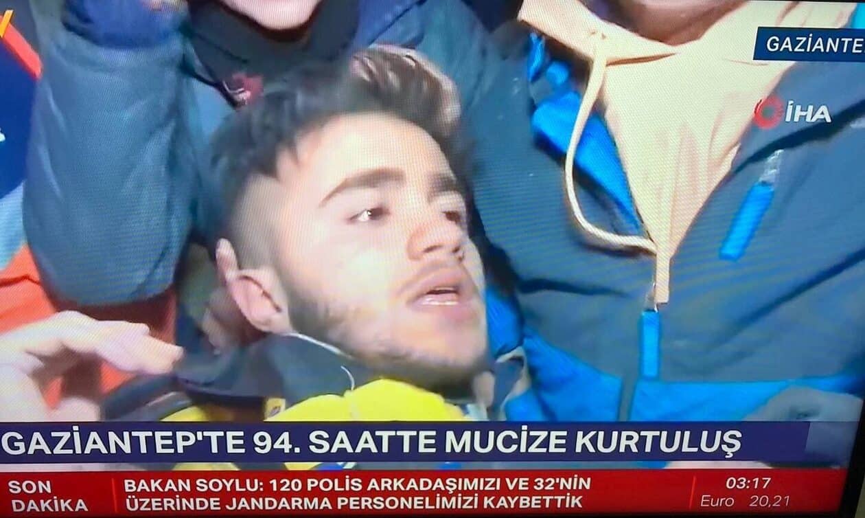 Πριν τα ξημερώματα κοντά στο επίκεντρο του σεισμού, οι διασώστες ανέσυραν τον Αντνάν Μουχάμεντ Κορκούτ από το υπόγειο όπου είχε εγκλωβιστεί από τον σεισμό τη Δευτέρα. Ο 17χρονος χαμογέλασε στο πλήθος φίλων και συγγενών που φώναζαν το ονόμά του, χειροκροτούσαν και έκλαιγαν με δάκρυα χαράς καθώς τον μετέφεραν και τον έβαζαν σε φορείο.