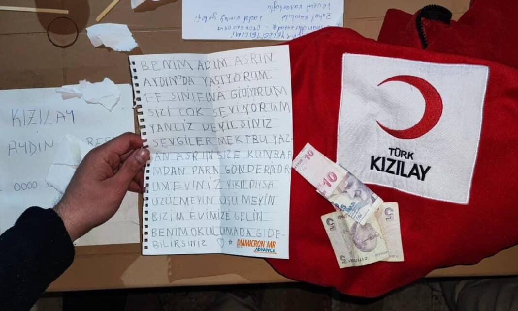 Ένα συγκινητικό σημείωμα από μία μαθήτρια δημοτικού που έσπασε τον κουμπαρά της για να βοηθήσει τους δοκιμαζόμενους από το σεισμό συμπατριώτες της, προκάλεσε ρίγη συγκίνησης. Η Ασρίν από το Αϊδίνιο έστειλε βοήθεια στους σεισμόπληκτους της νοτιοανατολικής Τουρκίας και ζέστανε τις καρδιές των ανθρώπων, γράφει η τουρκική εφημερίδα Daily Sabah.