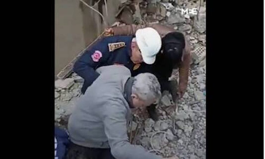 Σε ένα βίντεο διάσωσης που έγινε viral βλέπουμε τον απεγκλωβισμό ενός ηλικιωμένου άνδρα. Την ώρα που βγαίνει από τα ερείπια, μόνο με τα ρούχα που φορούσε όταν χτύπησε ο Εγκέλαδος, ένας διασώστης βγάζει και του δίνει τις μπότες του για να μην πληγώσει τα πόδια του περπατώντας στα χαλάσματα.