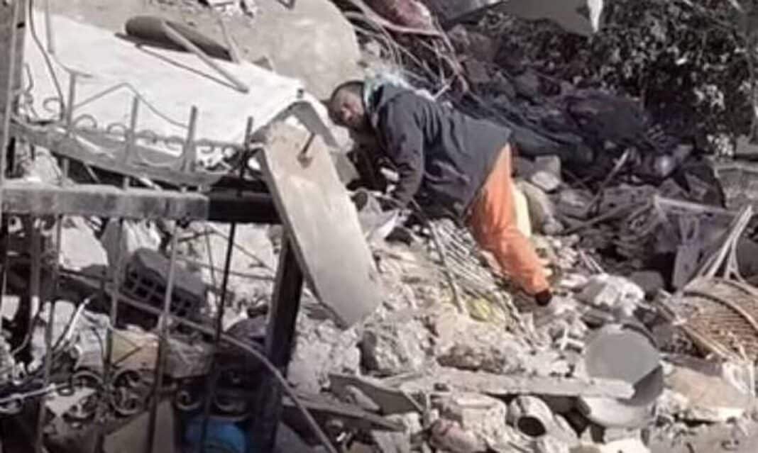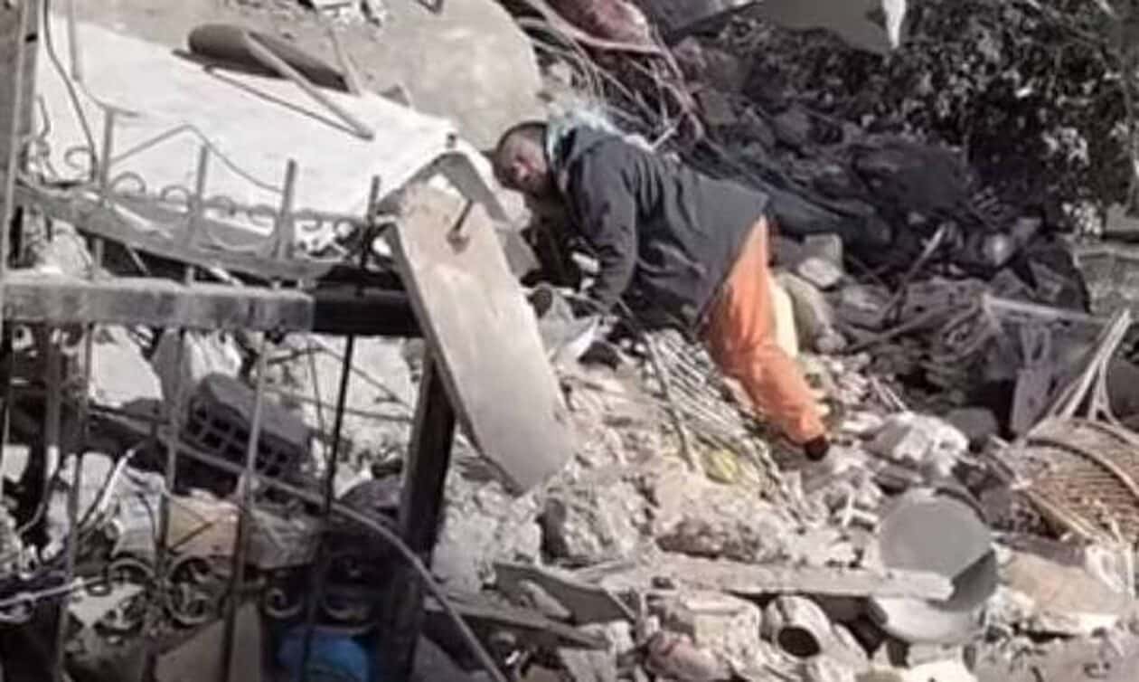 Ο πατέρας, όπως θα δείτε στα βίντεο, χτυπά με πέτρες τα χαλάσματα, φωνάζει, περιμένοντας να ακούσει τη φωνή των παιδιών του, που εγκλωβίστηκαν εκεί μετά τον σεισμό των 7,8 Ρίχτερ στην Τουρκία.