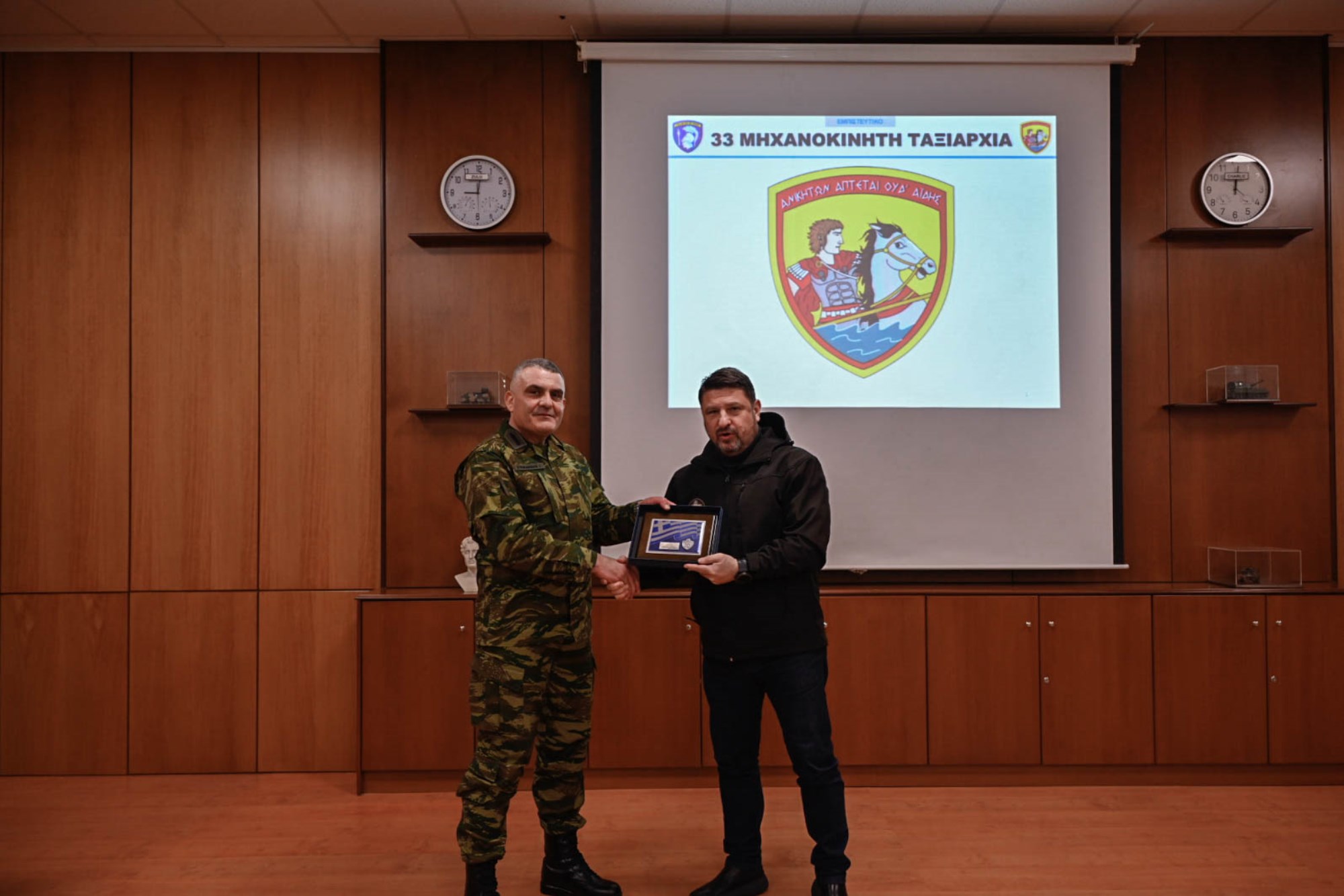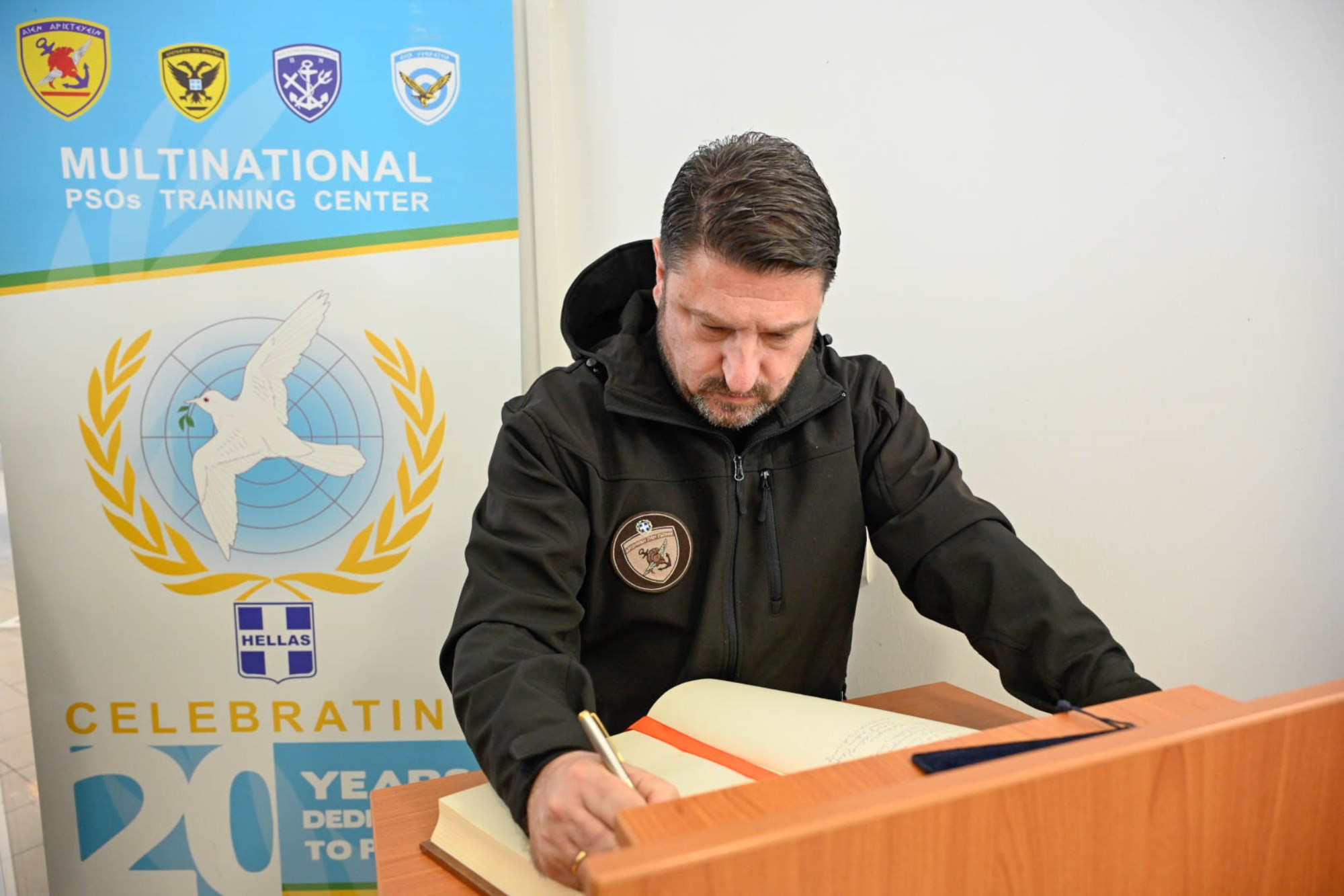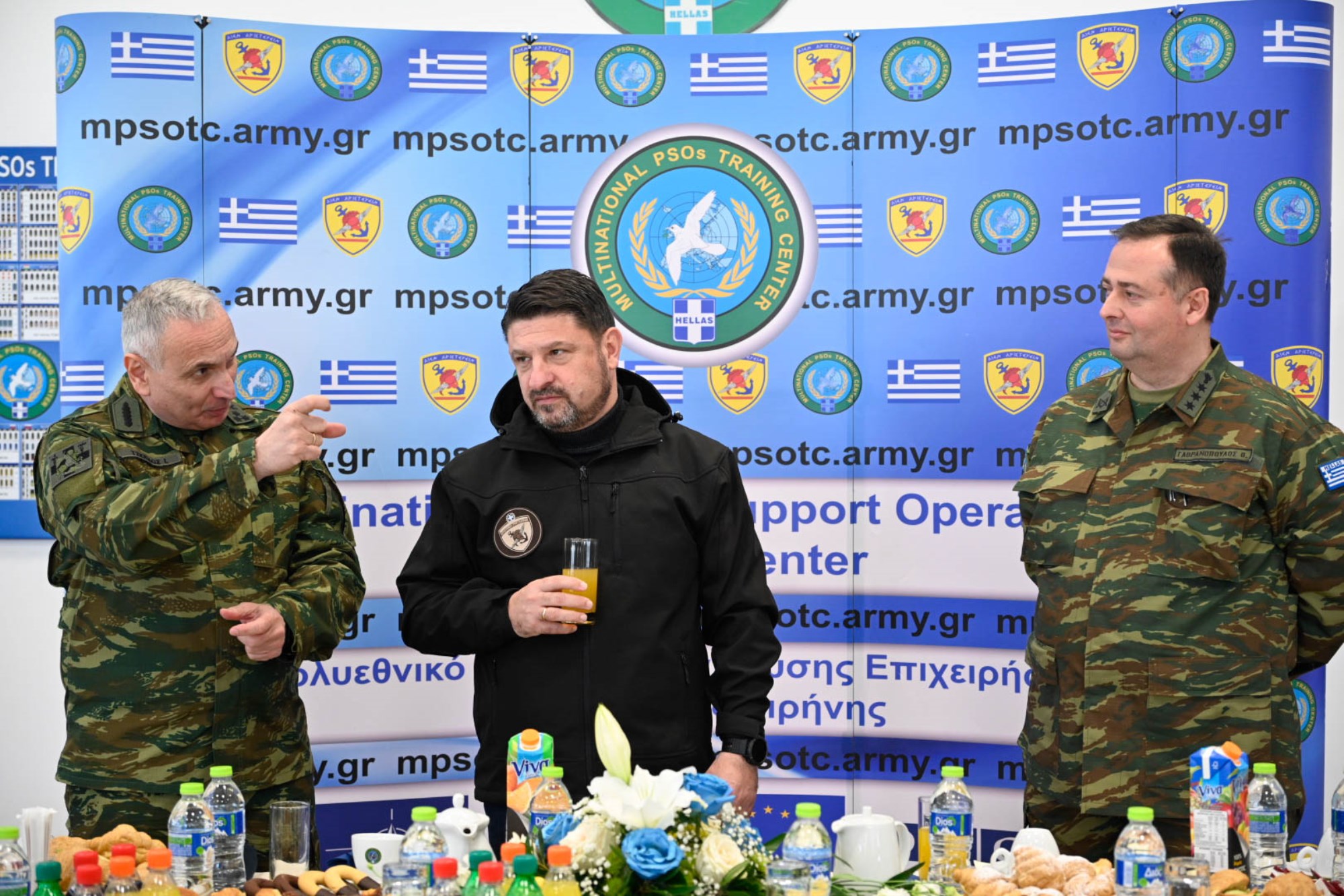 Ενημερώθηκε από τους Διοικητές της Ταξιαρχίας, Ταξίαρχο Γεώργιο Στεφανίδη και του Πολυεθνικού Κέντρου Συνταγματάρχη Θωμά Γραβανόπουλο για την οργάνωση, την αποστολή και τις τρέχουσες δραστηριότητές τους, ενώ είχε την ευκαιρία να συνομιλήσει με στελέχη των επιτελείων τους.