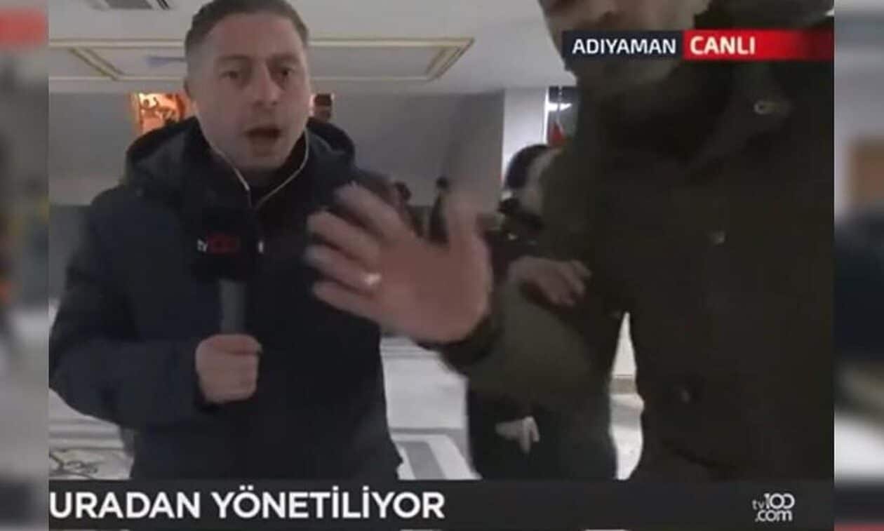 Ο δημοσιογράφος Sertaç Murat Koç μετέδιδε το ρεπορτάζ του για τον τηλεοπτικό σταθμό TV100 από την πόλι Αντιγιαμάν. Εκείνη την ώρα, ένας άνδρας εμφανίζεται διαμαρτυρόμενος για όλα όσα βιώνει λέγοντας πως «δεν έχουμε ρεύμα έξι μέρες, δεν έχουμε σκηνές». Ο δημοσιογράφος προσπαθεί να απομακρύνει τον πολίτη για να μην μπει καν στο πλάνο.