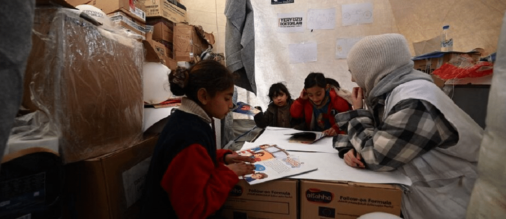 Σκηνές τρομακτικές για τα παιδιά που έζησαν τον σεισμό της 6ης Φεβρουαρίου, από τον οποίο έχουν χάσει τη ζωή τους τουλάχιστον 32.000 άνθρωποι στην Τουρκία.