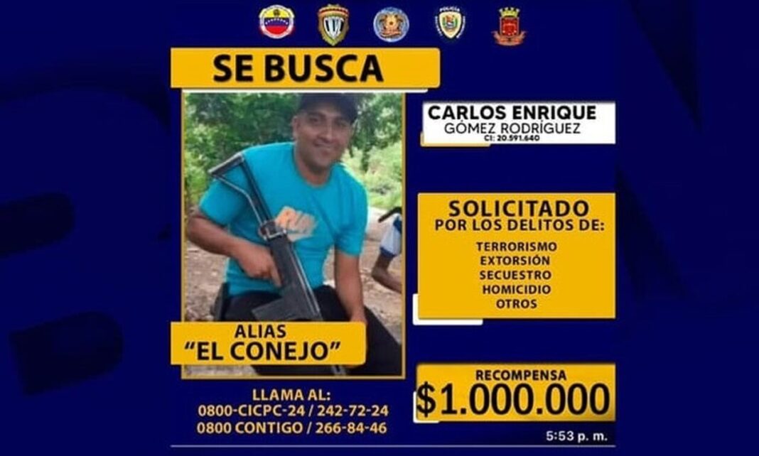 «Καταζητείται. Κάρλος Ενρίκε Γκόμες Ροντρίγκες ή ‘Ελ Κονέχο’. Αμοιβή: 1.000.000» δολάρια, γράφουν αφίσες που αναρτήθηκαν στο Twitter από τον διευθυντή της δικαστικής αστυνομίας Ντάγκλας Ρίκο.
