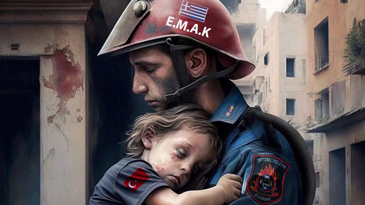 Όπως ανέφερε ο ίδιος, έφτιαξε την εικόνα προκειμένου να τιμήσει τους συναδέλφους του που έδωσαν τεράστια μάχη για να σώσουν τους εγκλωβισμένους από τα συντρίμμια του καταστροφικού σεισμού στην Τουρκία.