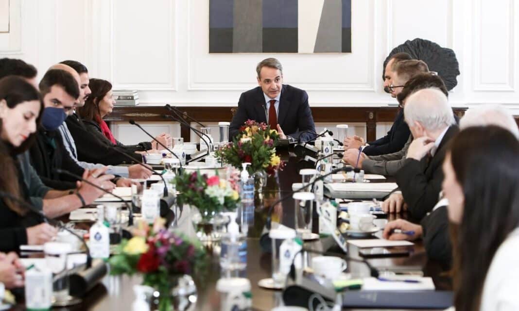 Με τους εκπροσώπους των καλλιτεχνών συναντήθηκε στο Μέγαρο Μαξίμου, ο πρωθυπουργός Κυριάκος Μητσοτάκης, για το ζήτημα του Προεδρικού Διατάγματος που σύμφωνα με τους καλλιτέχνες υποβαθμίζει τα πτυχία τους.