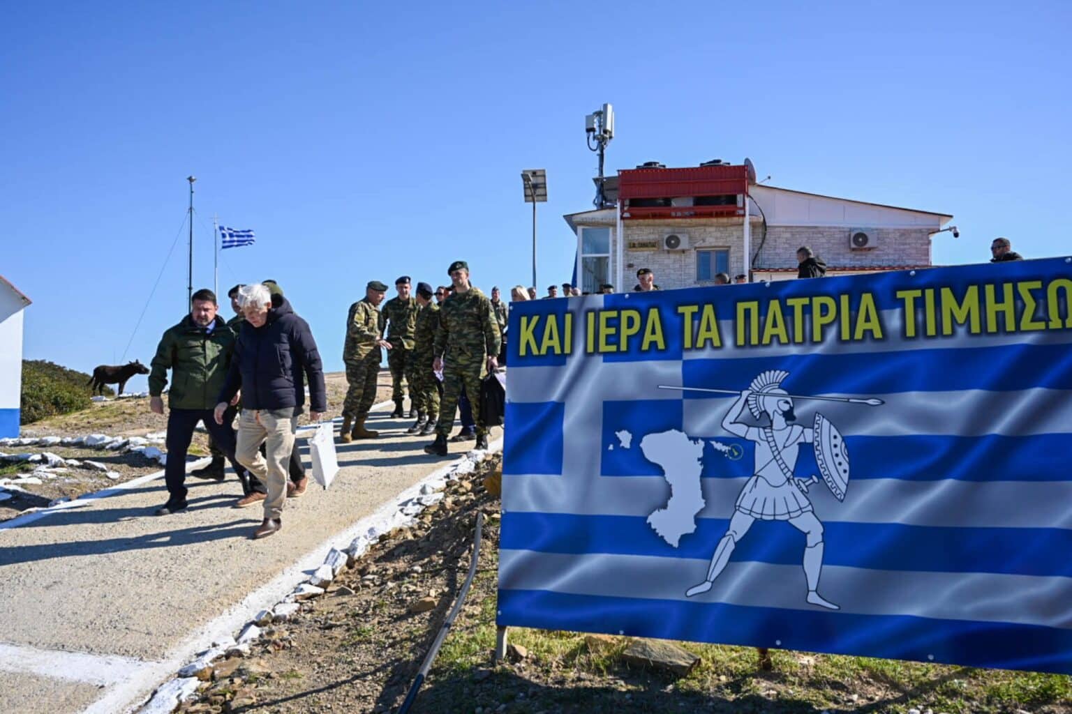 Ο υφυπουργός Εθνικής Άμυνας Νίκος Χαρδαλιάς, μαζί με τους Αρχηγούς ΓΕΕΘΑ και ΓΕΣ εγκαινίασαν το νέο επιτηρητικό φυλάκιο στο νησί που έχει μπει στο στόχαστρο των Τούρκων.