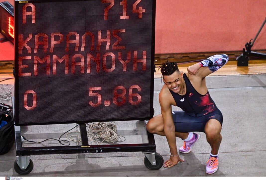 Μια εξαιρετική επίδοση σημείωσε στην πρώτη ημέρα του Πανελληνίου Πρωταθλήματος κλειστού στίβου ο Εμμανουήλ Καραλής. Ο Έλληνας πρωταθλητής του επί κοντώ ξεπέρασε τα 5,86μ. και κατέρριψε το Πανελλήνιο ρεκόρ που κατείχε ο Κώστας Φιλιππίδης με 5,85 μ., ενώ είναι και ο τρίτος καλύτερος άλτης για φέτος στην Ευρώπη.