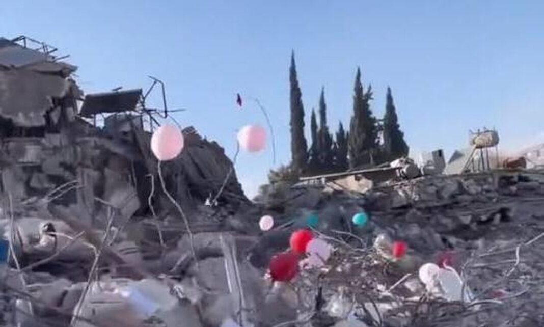 Ένα βίντεο που ανέβηκε στα μέσα κοινωνικής δικτύωσης και συγκεκριμένα στο Twitter προκαλεί συγκίνηση. Πολύχρωμα μπαλόνια κρέμονται στα συντρίμμια…
