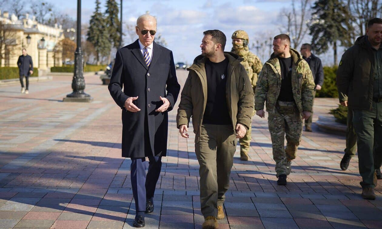 Παραμονές της πρώτης επετείου από την εισβολή της Ρωσίας στις 24 Φεβρουαρίου, o Aμερικανός πρόεδρος Τζο Μπάιντεν πραγματοποίησε αιφνιδιαστική επίσκεψη στο Κίεβο, διαμηνύοντας οτι οι Ηνωμένες Πολιτείες θα σταθούν στο πλευρό της Ουκρανίας «όσο χρειαστεί» και επαινώντας τον «ηρωικό» αγώνα τους.