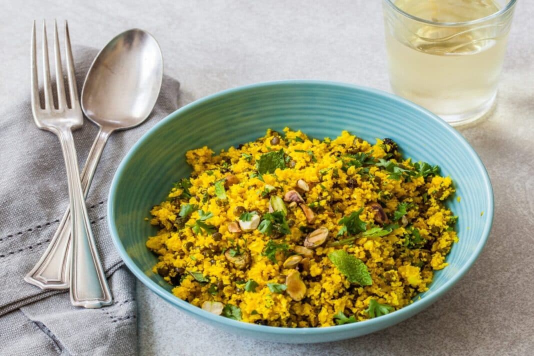 Κουσκούς πιλάφι με ψητό κουνουπίδι & κουκουνάρι