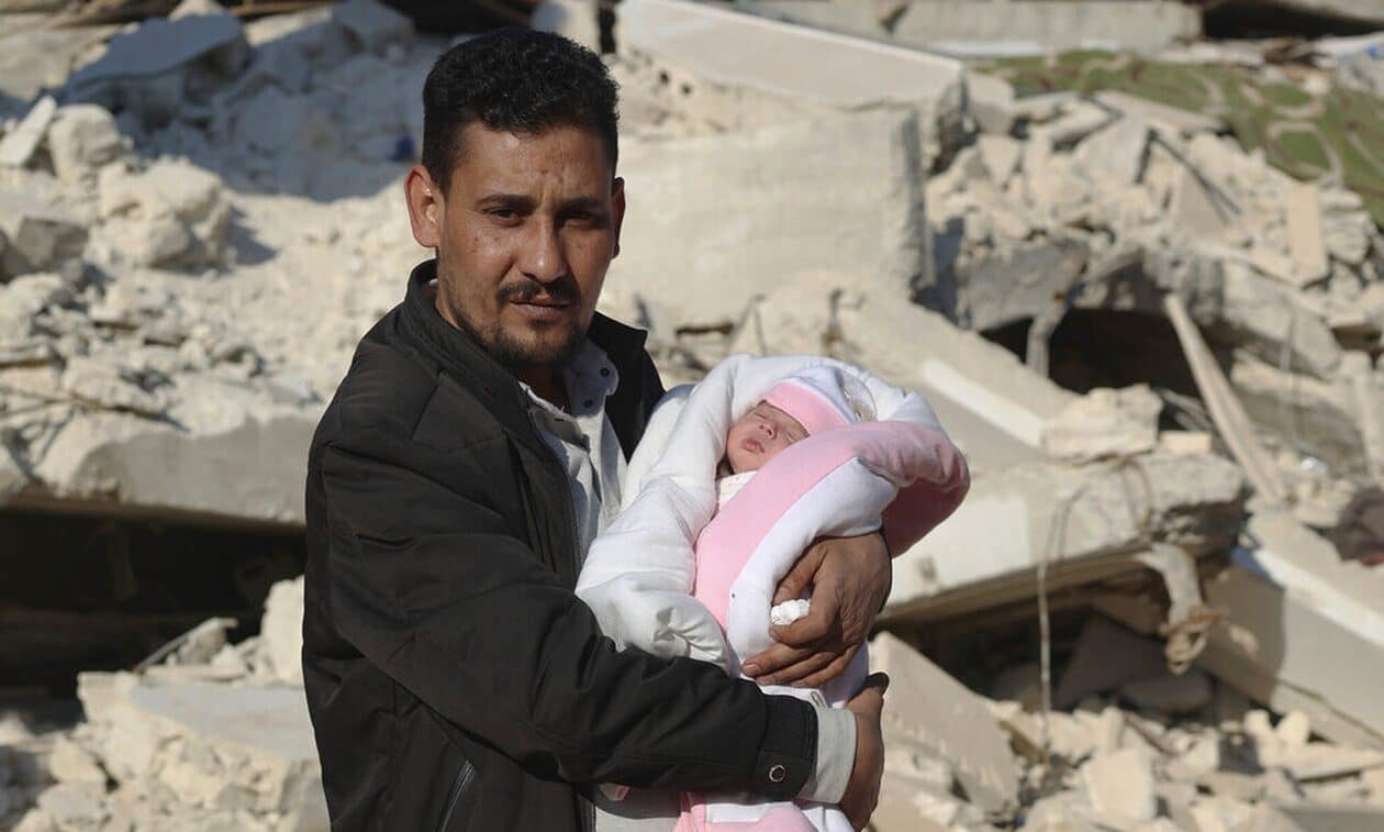 Η Άφραα Καλίλ Αλ Σαουάντι γεννήθηκε κάτω από τα ερείπια ενός κτηρίου που κατέρρευσε στη Συρία. Είναι το μόνο μέλος της οικογένειάς της που επέζησε από το φονικό σεισμό και πλέον υιοθετήθηκε από τη θεία και τον θείο της. «Είναι ένα από τα παιδιά μου τώρα», είπε ο θείος της.