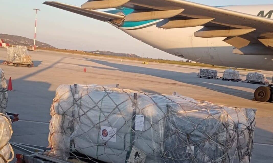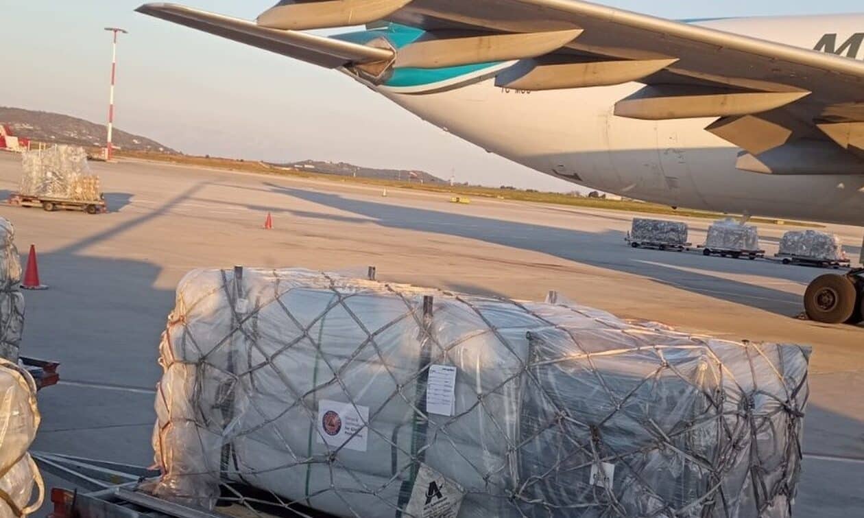 Η ελληνική ανθρωπιστική βοήθεια –συνολικά 148 τόνοι από φάρμακα, υγειονομικό υλικό και είδη πρώτης ανάγκης, όπως σκηνές, αναδιπλούμενα κρεβάτια, κουβέρτες και κλινοσκεπάσματα– μεταφέρθηκε αεροπορικώς στον κόμβο του Γκαζιαντέπ, απ’ όπου θα διοχετευθεί στη Βορειοδυτική Συρία με μέριμνα του Διεθνούς Οργανισμού Μετανάστευσης.