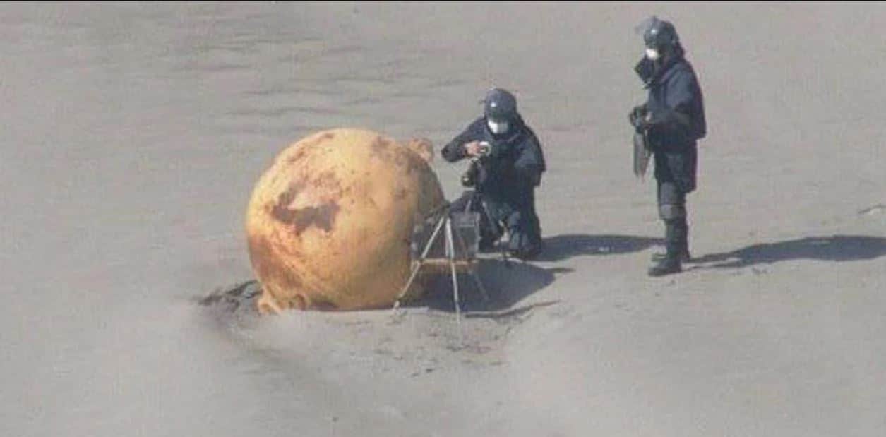 Αστυνομικοί και κάτοικοι σε μια παραλιακή πόλη της Ιαπωνίας έχουν μείνει… άναυδοι καθώς μια μεγάλη σιδερένια μπάλα ξεβράστηκε στην παραλία, με τις Αρχές να παραδέχονται ότι δεν έχουν ιδέα τι είναι. Γνωρίζουν μόνο ότι δεν πρόκειται να εκραγεί.