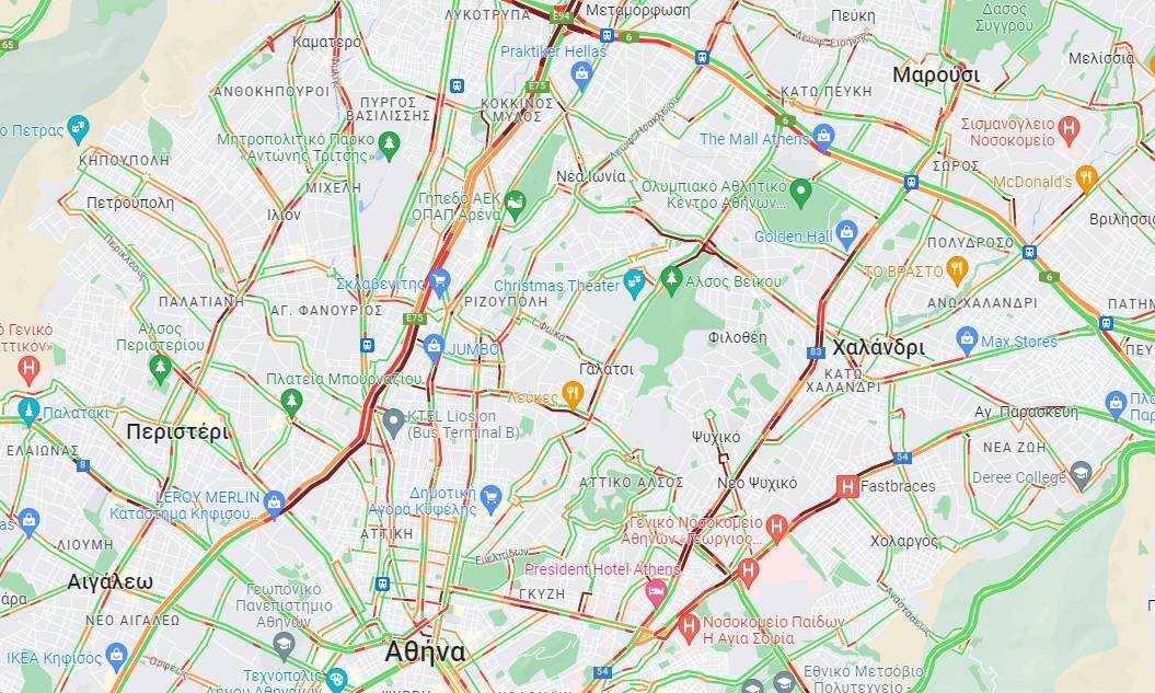 Κυκλοφοριακό κομφούζιο επικρατεί και σήμερα σε αρκετούς κεντρικούς οδικούς άξονες της Αττικής, με τον Κηφισό και την Κηφισίας να παρουσιάζουν τα μεγαλύτερα προβλήματα και στα δύο ρεύματα.