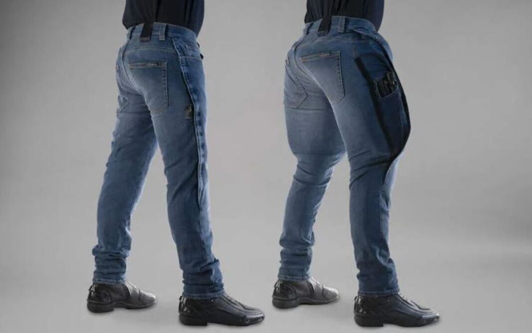 Τα φουσκωτά αξεσουάρ που προστατεύουν τους μοτοσικλετιστές σε περίπτωση ατυχήματος δεν είναι κάτι καινούργιο. Όμως η σουηδική startup Mo’cycle ισχυρίζεται ότι δημιούργησε το πρώτο τζιν με αερόσακο στον κόσμο. Κατασκευασμένο από Armalith, ένα ειδικό ύφασμα που μοιάζει και έχει την αίσθηση του τζιν, αλλά στην πραγματικότητα είναι αδιάβροχο και ανθεκτικό στην τριβή. Οι ενσωματωμένοι αερόσακοι ενεργοποιούνται κατά τη διάρκεια ατυχημάτων για να προστατεύσουν το κάτω μέρος του σώματος του αναβάτη.