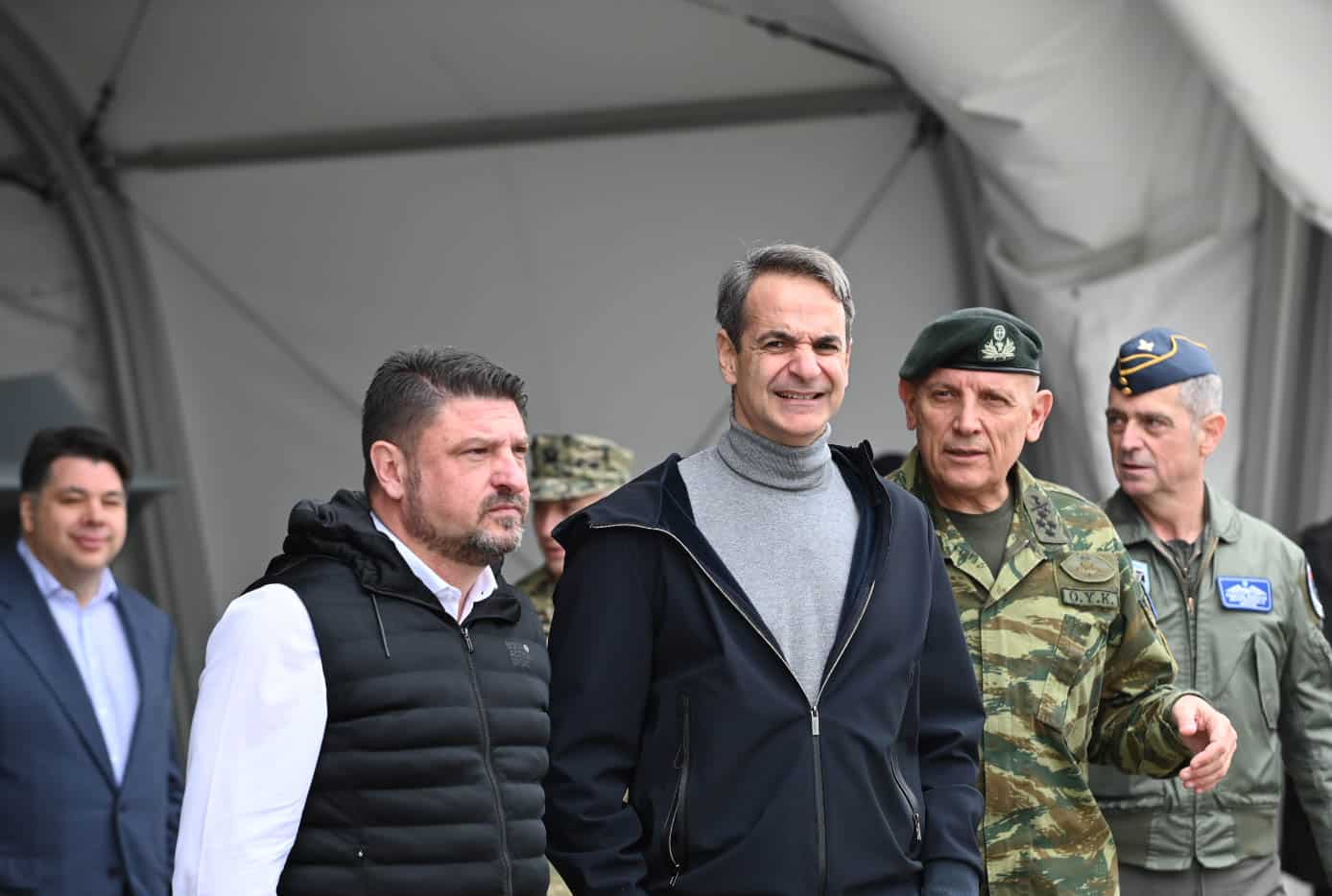 Ο Κυριάκος Μητσοτάκης πήγε στην 110 Πτέρυγα Μάχης, στην Λάρισα, όπου βρίσκονται οι αμερικανικοί «θεριστές», συνοδευόμενος από τον υφυπουργό Εθνικής Άμυνας και τον Αρχηγό ΓΕΕΘΑ.