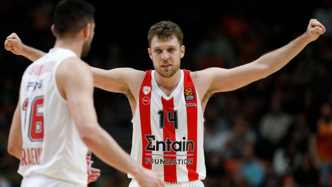 Από τη Βαλένθια, που υποχώρησε στο 13-12, γνωρίζοντας την πρώτη ήττα της, μετά από 6 διαδοχικές νίκες, ο Σλοβένος Κλέμεν Πρέπελιτς, με 21 πόντους και 5/7 τρίποντα, έκανε ό,τι μπορούσε για να δυσαρεστήσει τον Ολυμπιακό, αλλά στο τέλος έμεινε πικραμένος. Ο πρώην παίκτης της Λάρισας, Τζέιμς Ουέμπ πρόσθεσε 14 πόντους με 4/8 τρίποντα, ενώ 11 πόντους σημείωσε ο Τζάρεντ Χάρπερ.