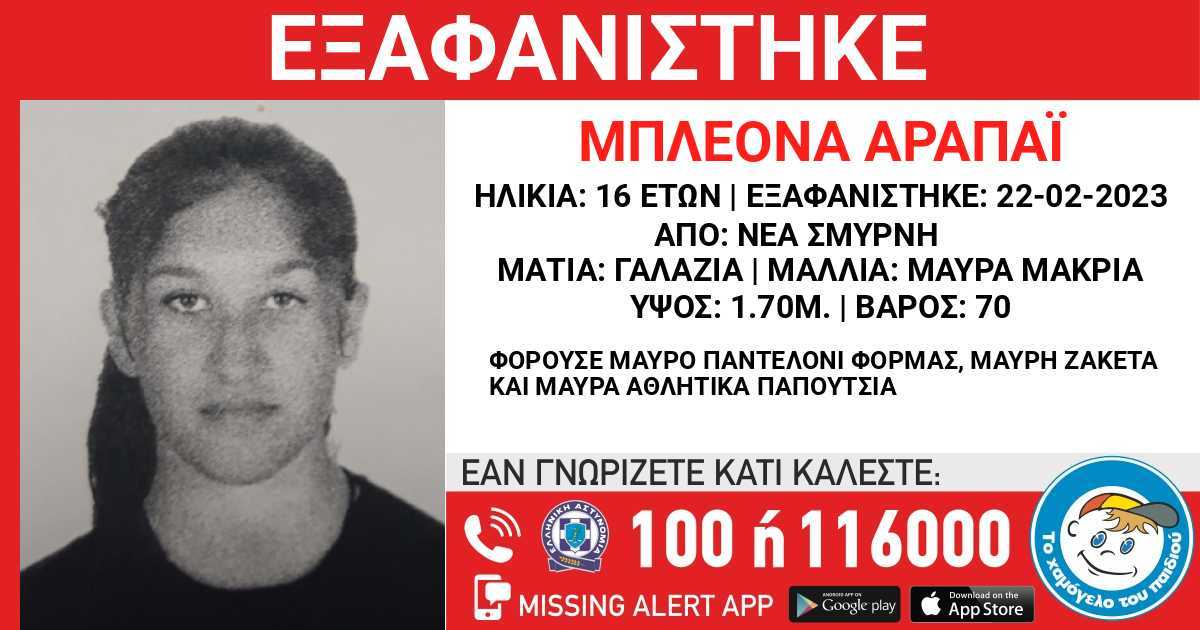 Συναγερμός σήμανε στις Αρχές μετά την εξαφάνιση της 16χρονης Αραπάϊ Μπλεόνα από δομή παιδικής προστασίας στη Νέα Σμύρνη.