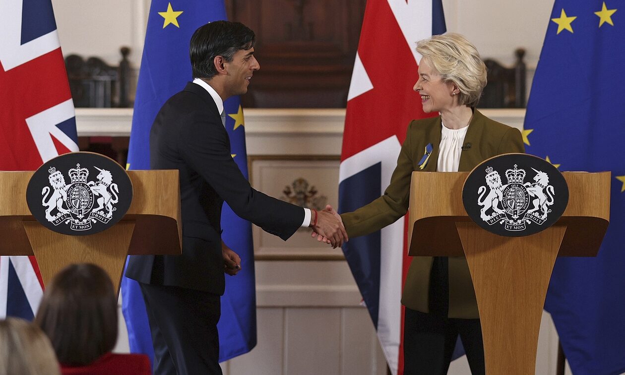 Ο πρωθυπουργός της Βρετανίας Ρίσι Σούνακ εξέφρασε την ικανοποίησή του για «ένα νέο κεφάλαιο» στις σχέσεις ανάμεσα στο Λονδίνο και την Ευρωπαϊκή Ενωση χάρη στην επίτευξη συμφωνίας για την μετά το Brexit τροποποίηση των διευθετήσεων για την Βόρεια Ιρλανδία έπειτα από μήνες έντασης.