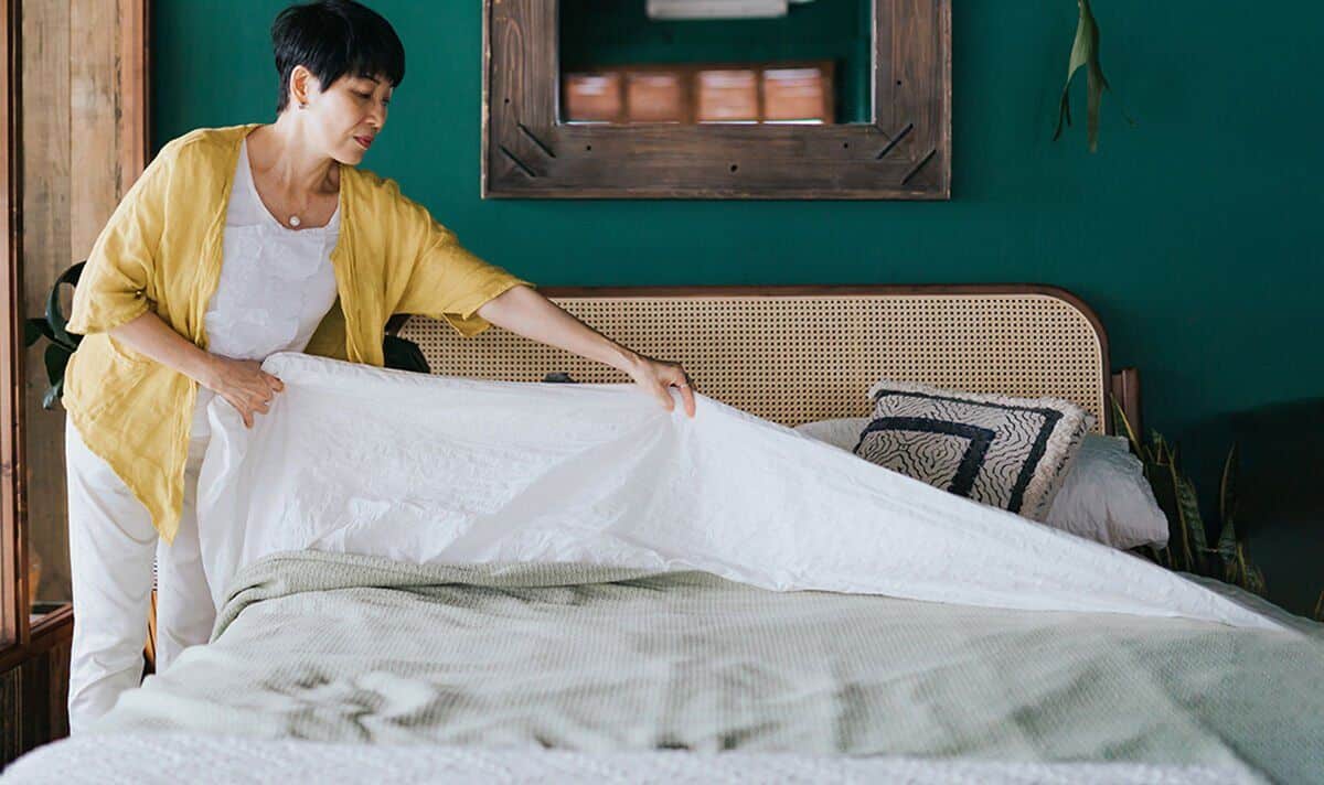 “Κάθε βράδυ, ο άνθρωπος εκκρίνει κατά μέσο όρο 200ml ιδρώτα, τα οποία απορροφώνται από τα σεντόνια και το πάπλωμα. Επιπλέον, μελέτες δείχνουν ότι τα κλινοσκεπάσματα φιλοξενούν περίπου 20.000 ακάρεα σκόνης. Δεδομένου ότι το 80% των ακάρεων αποτελείται από νεκρό δέρμα, θα πρέπει να τα πλένετε τουλάχιστον μία φορά την εβδομάδα. Ωστόσο, αν έχετε συχνά εξάψεις ή ιδρώνετε κατά τη διάρκεια της νύχτας, θα πρέπει να τα πλένετε πιο συχνά”.