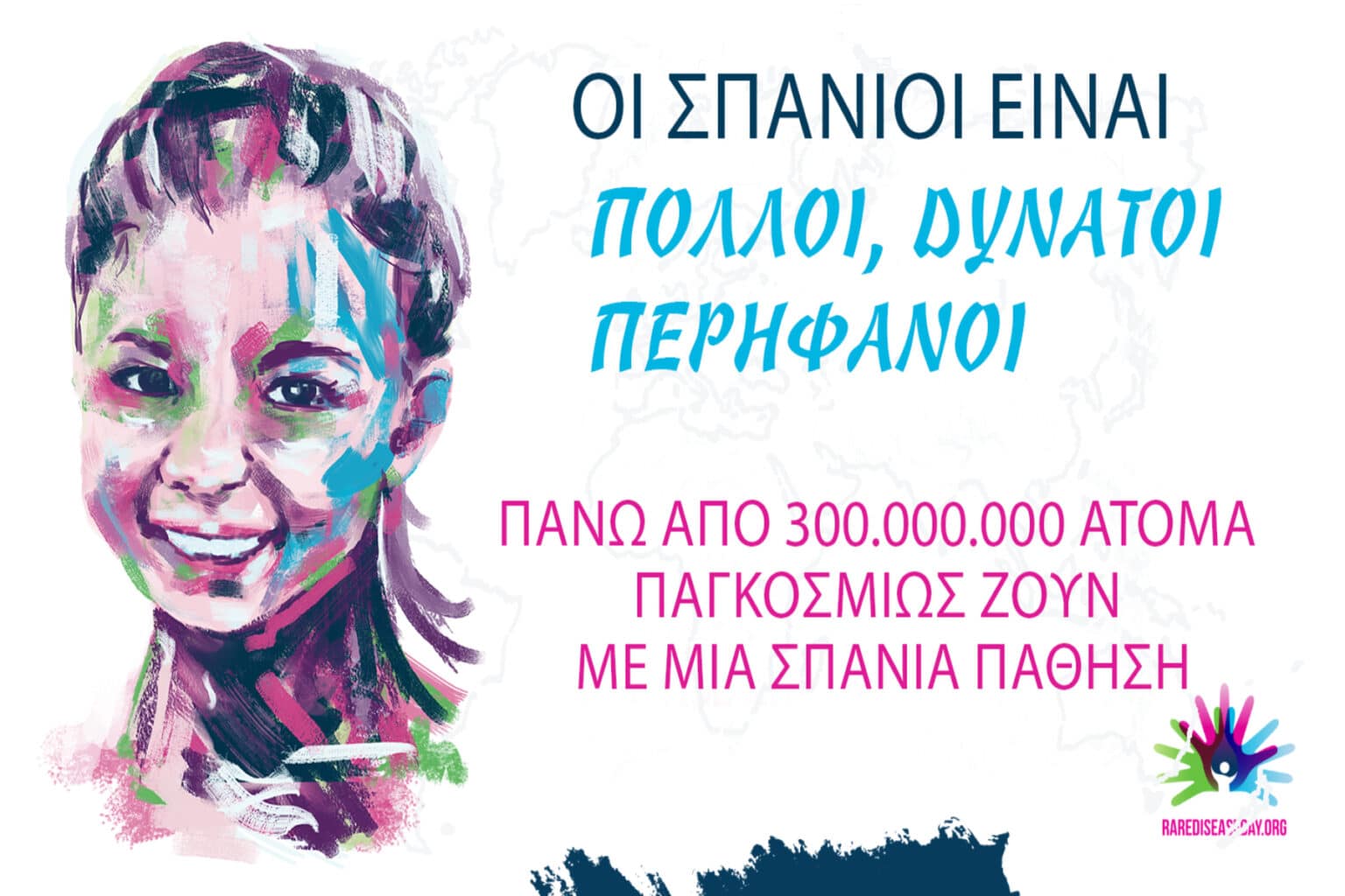 Στην Ελλάδα η ΕΛΛΗΝΙΚΗ ΟΜΟΣΠΟΝΔΙΑ ΣΥΛΛΟΓΩΝ – ΣΠΑΝΙΩΝ ΝΟΣΗΜΑΤΩΝ ΠΑΘΗΣΕΩΝ (Ε.Ο.Σ. – ΣΠΑ.ΝΟ.ΠΑ.), μέλος της ΕΣΑμεΑ, για τη φετινή Παγκόσμια Ημέρα Σπανίων Παθήσεων, συμβάλει στη προβολή και στην ανάδειξη της σπουδαιότητας, της ιδιαιτερότητας, της σημαντικότητας αλλά και της μοναδικότητας των ανθρώπων αυτών, όπου μια σπάνια πάθηση έχει γίνει βίωμα και τρόπος ζωής για τους ίδιους και τις οικογένειες τους.