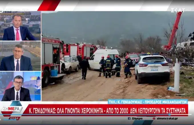 Ήταν μια μετωπική σύγκρουση, τα δύο τρένα κινούνταν στην ίδια γραμμή με αντίθετη κατεύθυνση», ανέφερε μιλώντας στον ΣΚΑΪ ο πρόεδρος των μηχανοδηγών, Κώστας Γενίδουνιας, αναφερόμενος στο πολύνεκρο δυστύχημα μετά τη σύγκρουση των δύο τρένων στα Τέμπη.