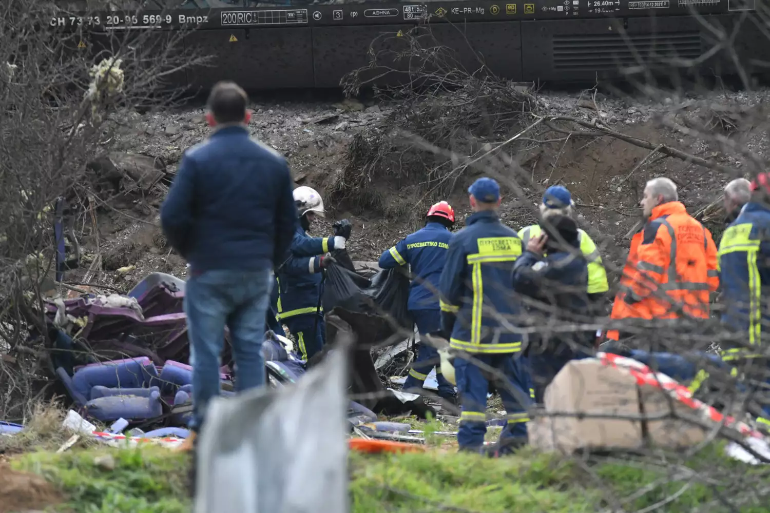 Στο σημείο της σιδηροδρομικής τραγωδίας εξακολουθούν να βρίσκονται πολλά ασθενοφόρα και κυρίως πυροσβεστικά οχήματα, μαζί με δυνάμεις του ΕΚΑΒ και δύο ομάδες ΕΚΑΜ από τη Λάρισα και τη Θεσσαλονίκη.