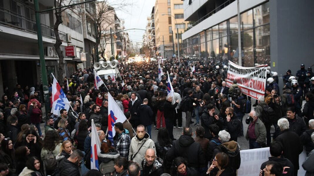 Σύγκρουση τρένων: Νέα συγκέντρωση έξω από τα γραφεία της Hellenic Train πραγματοποιούν αυτή την ώρα Εργατικά Συνδικάτα της Αττικής, Φοιτητικοί Σύλλογοι και μαζικοί φορείς για την τραγωδία στα Τέμπη.