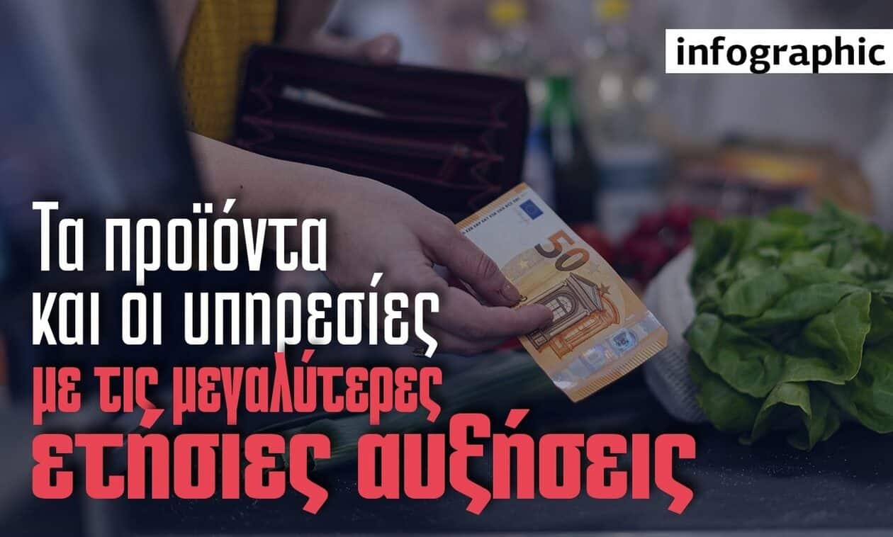 Μπορεί τα στοιχεία για τον πληθωρισμό Φεβρουαρίου που θα ανακοινώσει στις 13 Μαρτίου η Ελληνική Στατιστική Αρχή να δείξουν αποκλιμάκωση του πληθωρισμού σε ετήσια βάση, ωστόσο οι τιμές σε προϊόντα και υπηρεσίες είναι ακόμη και 52% υψηλότερες σε σχέση με πέρυσι.