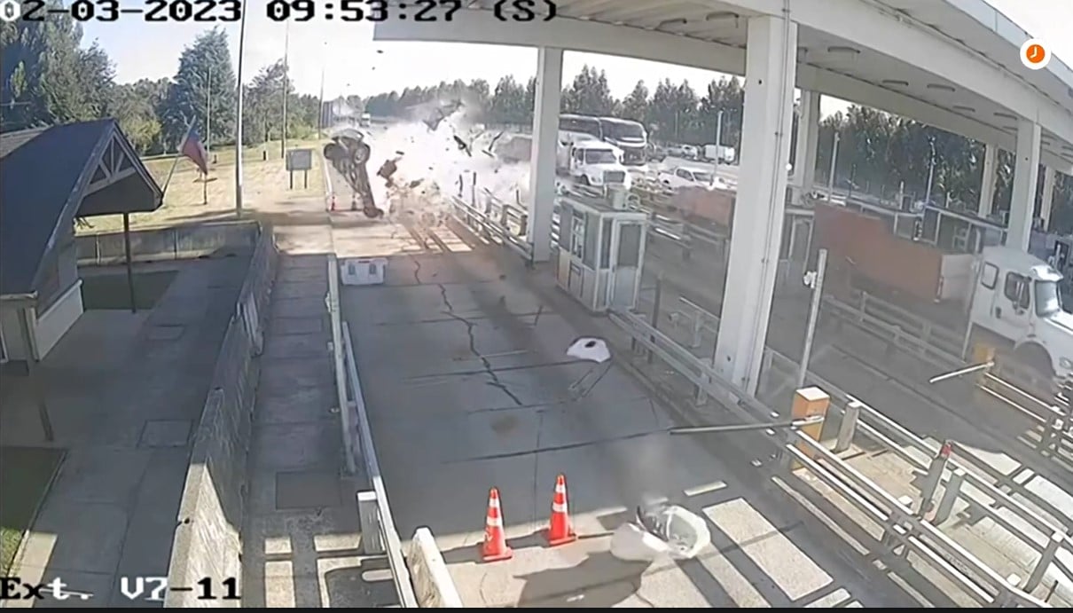 Σοκ προκαλούν τα πλάνα από κάμερες ασφαλείας στην πόλη Πουράνκε της Χιλής που δείχνουν ένα αυτοκίνητο να κατευθύνεται με μεγάλη ταχύτητα  πάνω σε σταθμό διοδίων.
