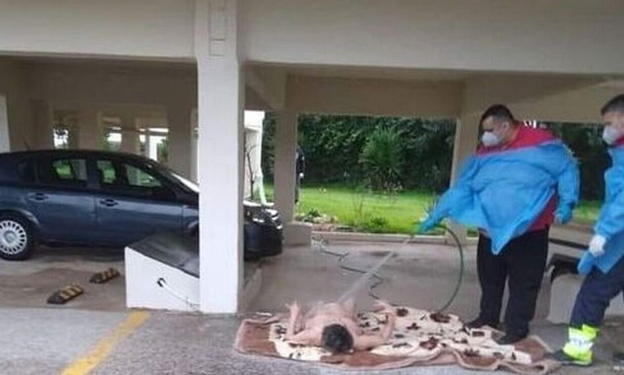 Μια εικόνα ντροπής κάνει τον γύρο του διαδικτύου τις τελευταίες ώρες, με το πλήρωμα ενός ασθενοφόρου να… «πλένει» με λάστιχο μια 70χρονη γυναίκα, η οποία κείτεται γυμνή σε πολυκατοικία του Ωρωπού.