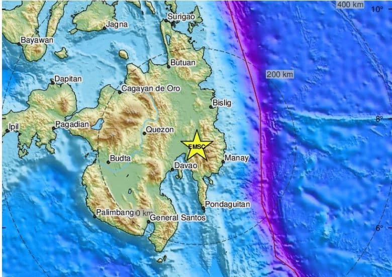 Η σεισμική δόνηση σημειώθηκε περίπου στις 14:00 (τοπική ώρα, 08:00 ώρα Ελλάδας), κοντά στο χωριό Σαν Μαριάνο στην επαρχία Νταβάο ντε Όρο, στο νησί Μιντανάο που βρίσκεται στο νότιο τμήμα του αρχιπελάγους.