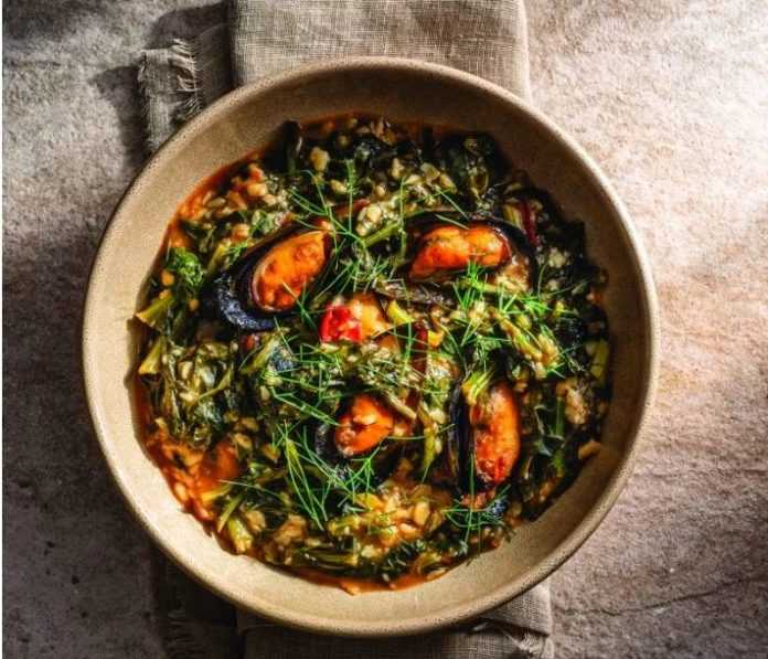 Συνταγή, που μυρίζει θάλασσα με μύδια γιαχνί και χόρτα. Πρόκειται για ένα πιάτο, που μπορεί να μαγειρευτεί καθημερινά, αλλά είναι ιδανικό για όσους νηστεύουν.